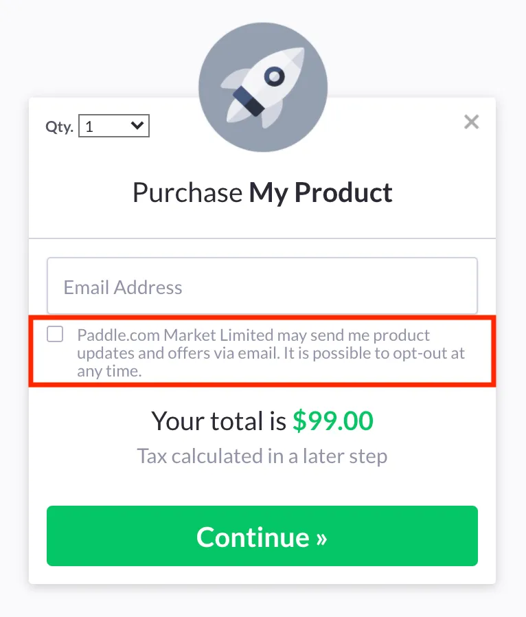 Section titled “Checkout”For GDPR compliance reason, users are only added into your Audience list if they have actively opted-in to marketing emails by ticking the checkbox indicated below.